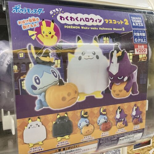 昨年発売した、わくわくハロウィンマスコットの第2弾です。 今年はこの3匹のポケモン。 ○ポケモン わくわくハロウィンマスコット2 8月発売。タカラトミーアーツの200円カプセルトイ(ガチャ ガチャ)。 全6種。ピカチュウ(白いおばけ仮装)ピカチュウ(黒い…